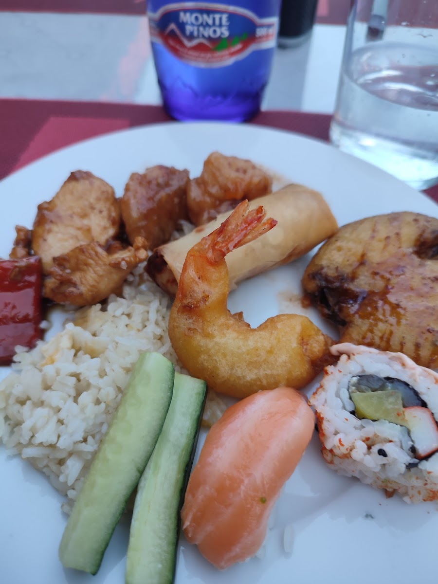 Superb! Huge choice with steak and prawns available to be cooked to order. We had freshly grilled prawns, enjoyed the sushi selection, Asian offerings (spring rolls, duck and pancakes, satay chicken - too many to list). Excellent stir fry selection and excellent fried rice(also noodles). Drinks we’ll priced, service fast and friendly - would not hesitate to return. OMG!!! Here we are a week later enjoying sushi, white wine and assorted Asian specialties. It is only a few steps from the paseo - come on in ! Best value on the costa and that is saying something. Es espectacular! Muy fresca, la comida es muy Buena. Nos gusta mucho, gracias