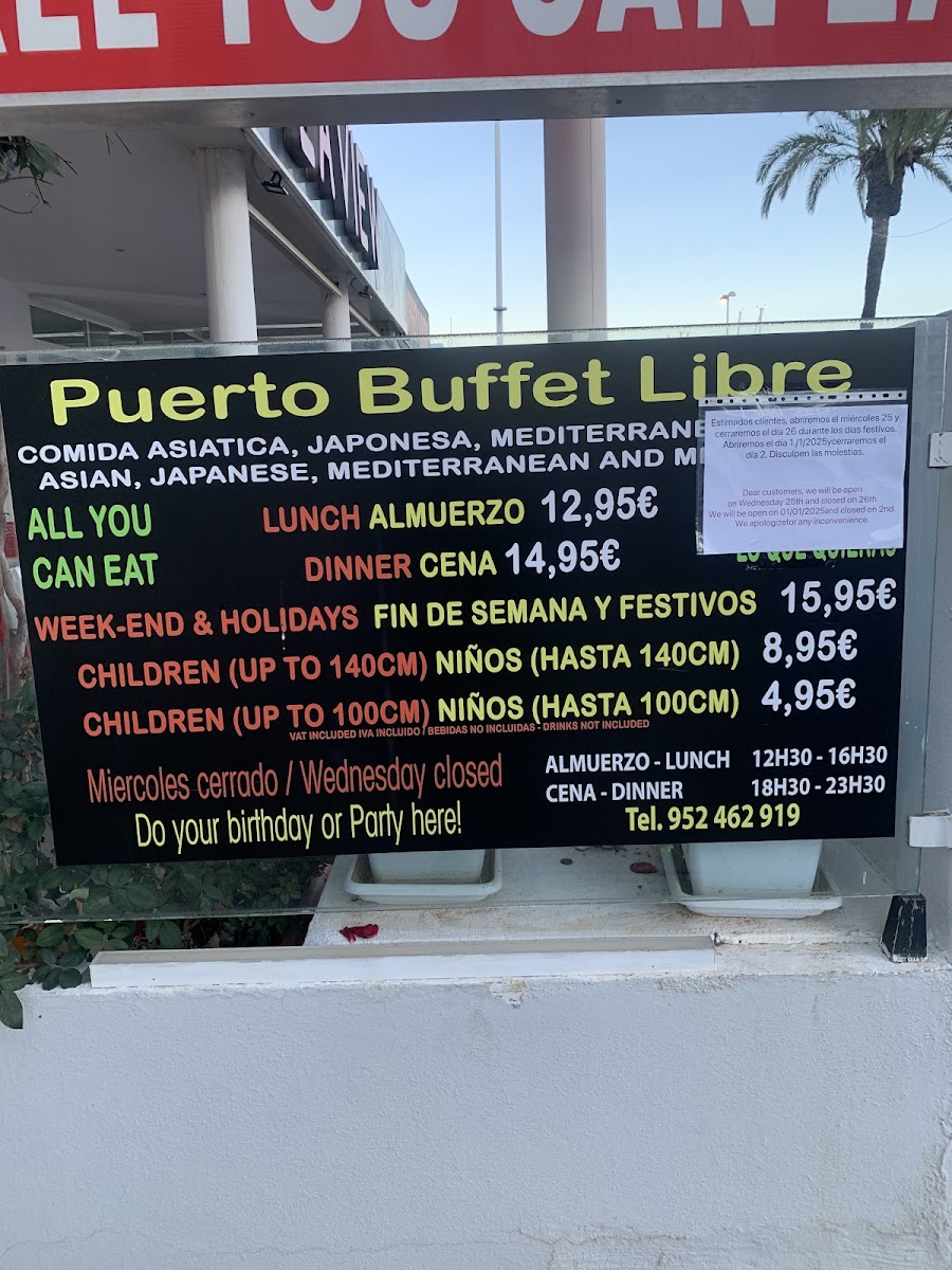 The menu at Seaview Restaurante Puerto Buffet Libre offers a relaxed and varied dining experience that blends Asian and Mediterranean flavors in a casual buffet setting. It’s the kind of place where guests can enjoy simple, familiar dishes as well as more adventurous options, all served in a welcoming atmosphere by the sea.